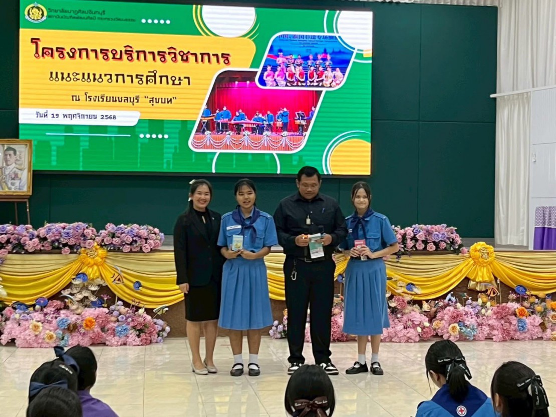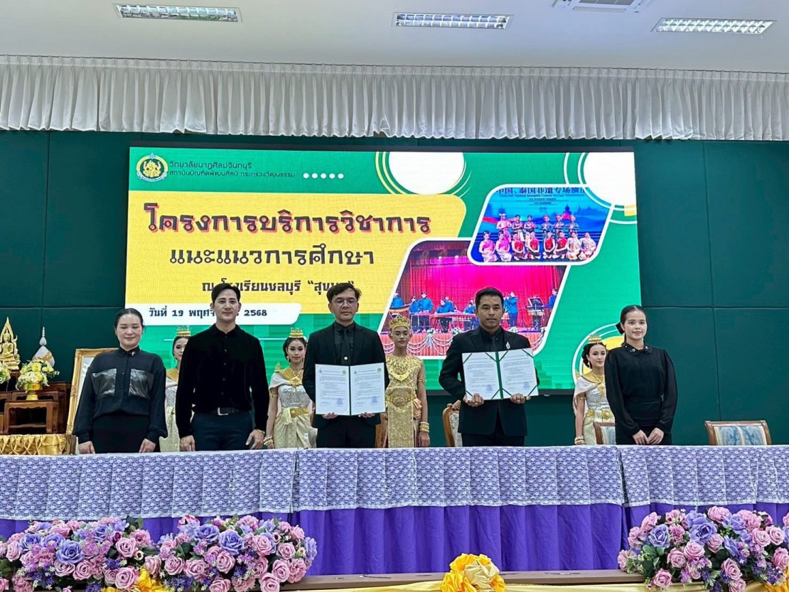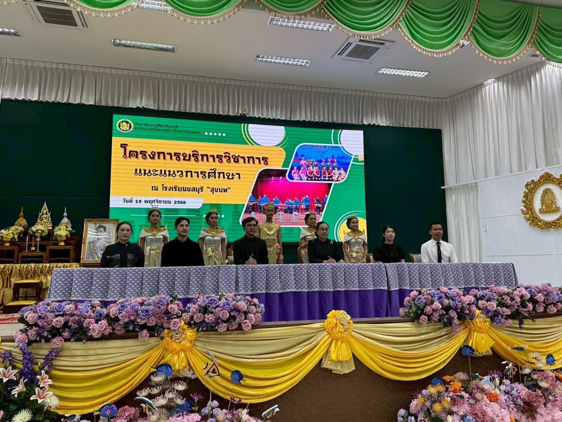 วิทยาลัยนาฏศิลปจันทบุรี จัดโครงการบริการวิชาการแนะแนวการศึกษา ณ โรงเรียนชลบุรี "สุขบท" ตำบลบางทราย อำเภอเมือง จังหวัดชลบุรี วันที่ 19 พฤศจิกายน 2568