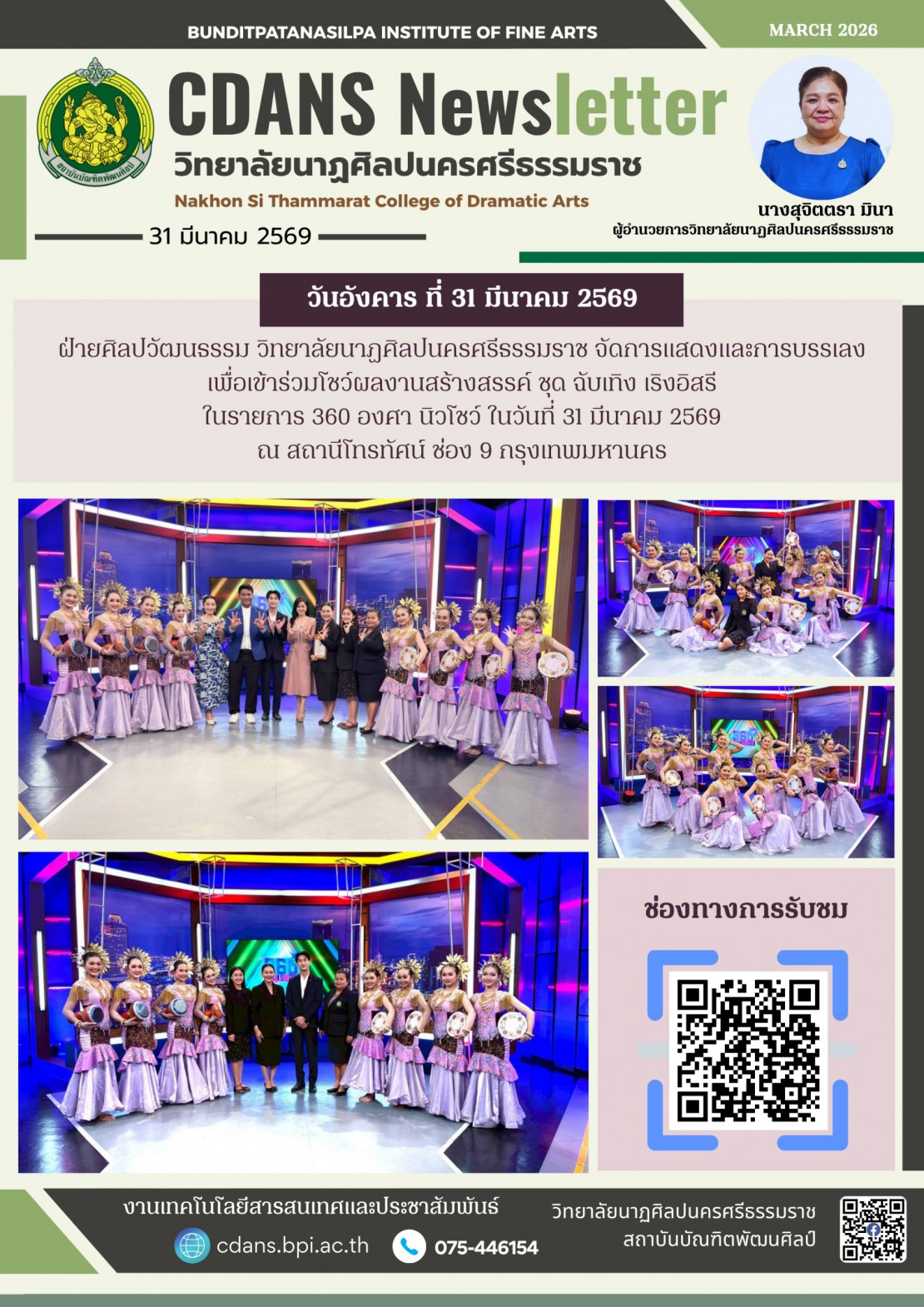 ฝ่ายศิลปวัฒนธรรม วิทยาลัยนาฏศิลปนครศรีธรรมราช จัดการแสดงและการบรรเลง เพื่อเข้าร่วมโชว์ผลงานสร้างสรรค์ ชุด ฉับเทิง เริงอิสรี