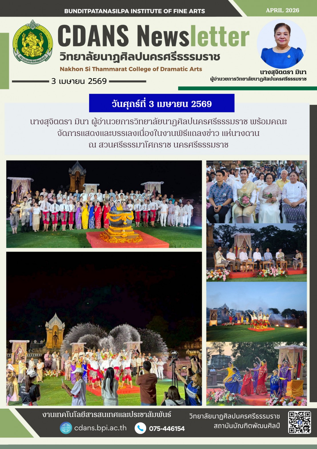 วิทยาลัยนาฏศิลปนครศรีธรรมราช จัดการแสดงและบรรเลงเนื่องในงานพิธีแถลงข่าว แห่นางดาน ณ สวนศรีธรรมาโศกราช นครศรีธรรมราช
