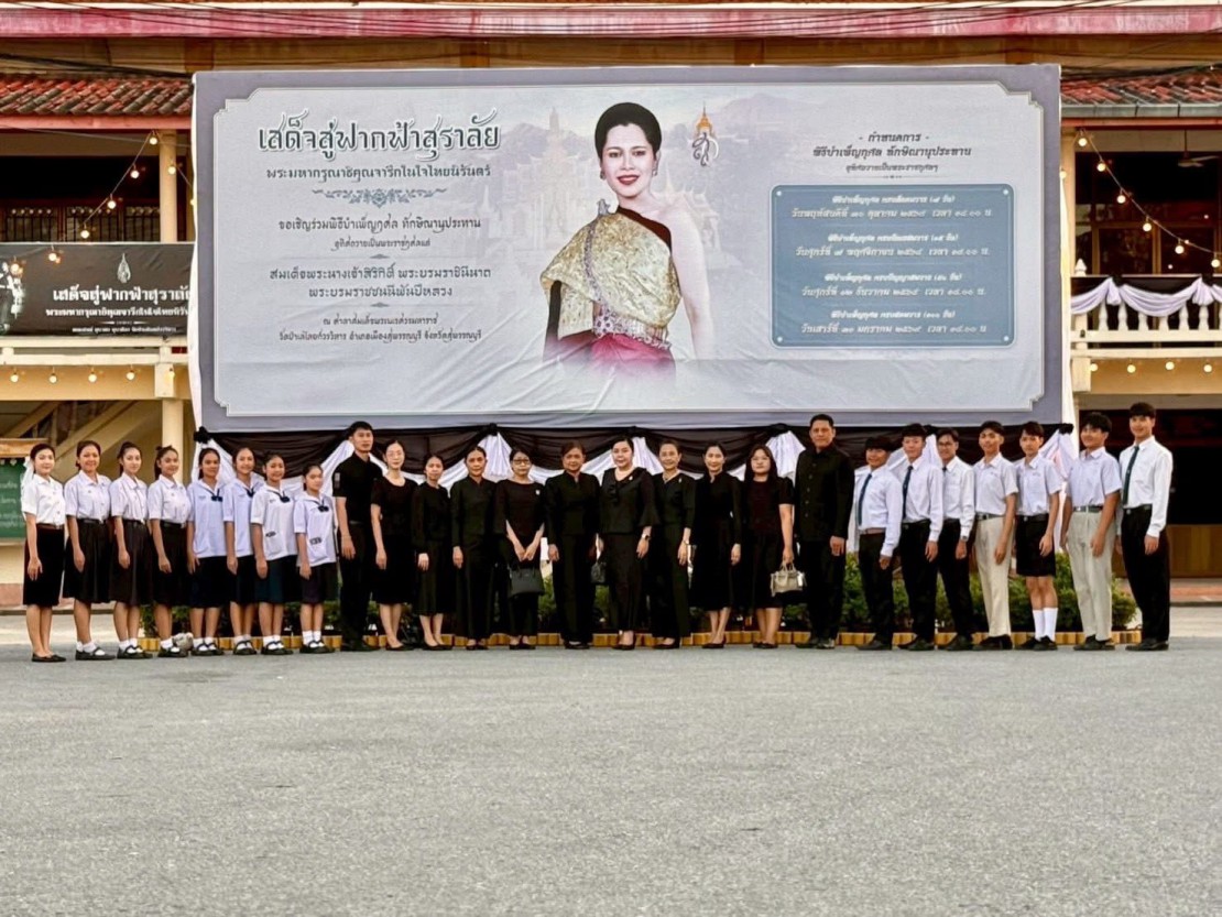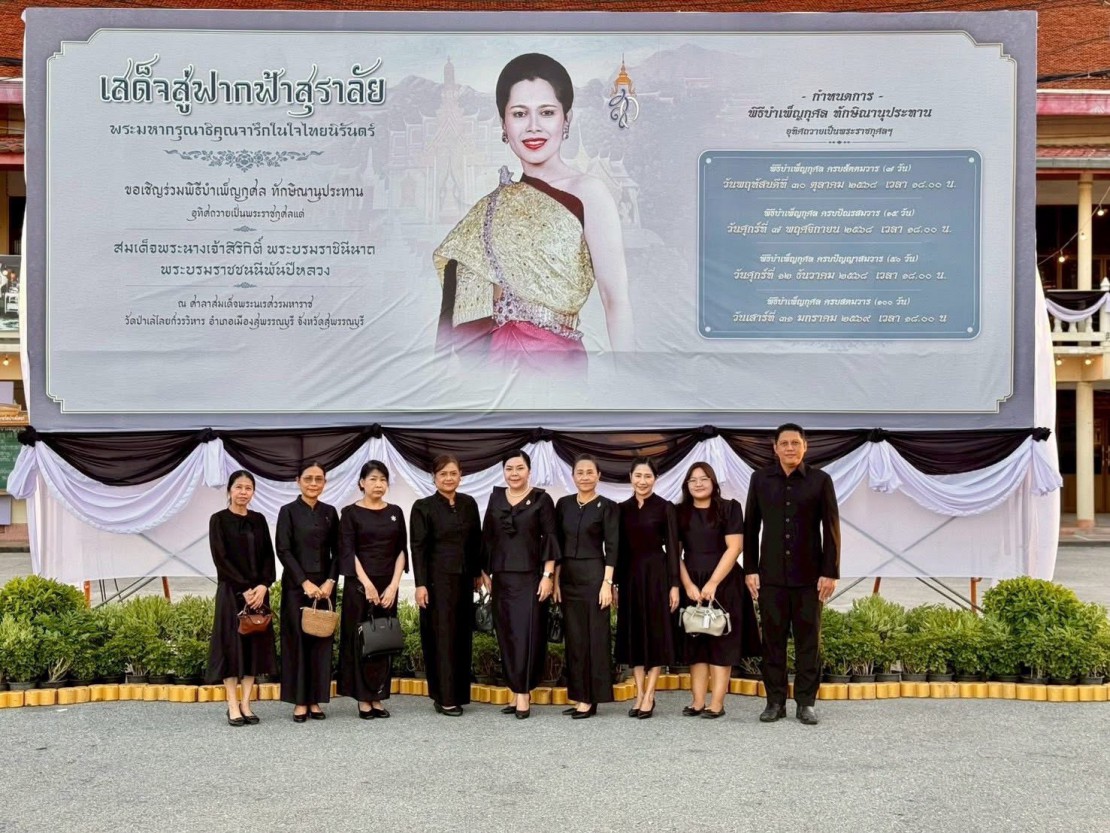 วันที่ 15 พฤศจิกายน 2568 ดร.อินทิรา พงษ์นาค ผู้อำนวยการวิทยาลัยนาฏศิลปสุพรรณบุรี พร้อมด้วยผู้บริหาร คณะครู อาจารย์ บุคลากรทางการศึกษา นักเรียน นักศึกษา เป็นเจ้าภาพในพิธีบำเพ็ญกุศล เพื่ออุทิศถวายพระราชกุศลแด่สมเด็จพระนางเจ้าสิริกิติ์ พระบรมราชินีนาถ พระบรมราชชนนีพันปีหลวง  ร่วมกับหน่วยงานของกระทรวงวัฒนธรรม ณ ศาลาสมเด็จพระนเรศวรมหาราช วัดป่าเลไลยก์วรวิหาร อำเภอเมืองสุพรรณบุรี จังหวัดสุพรรณบุรี