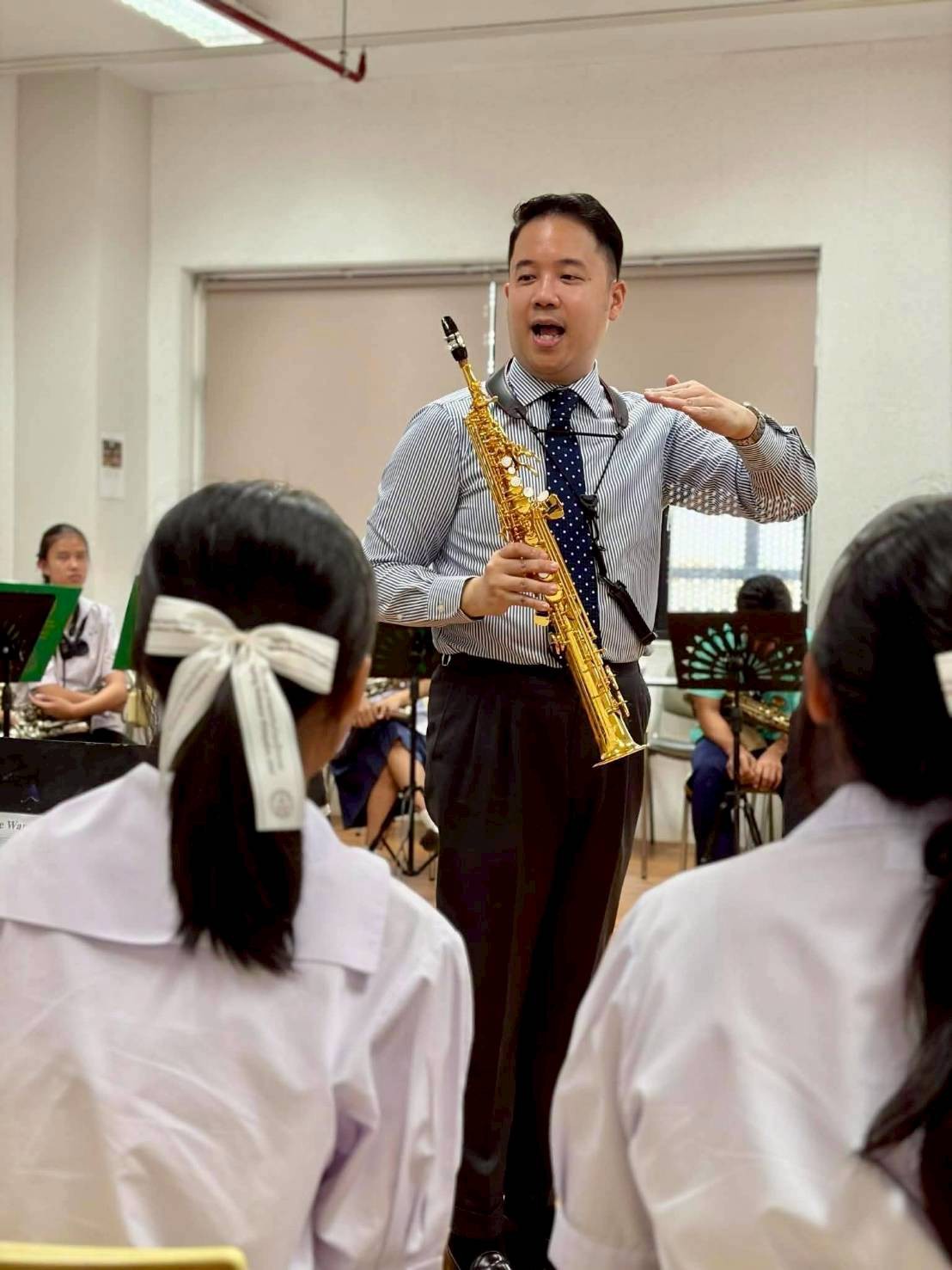 กลุ่มสาระการเรียนรู้ดนตรีสากล ภาควิชาดุริยางคศิลป์ ร่วมกับบริษัทสยามดนตรียามาฮ่า จัดอบรมการพัฒนาพื้นฐานและทักษะการบรรเลง แซกโซโฟน โดยอาจารย์ สุพัฒน์ หาญพัฒนชัย ศิลปินแซกโซโฟน ยามาฮ่า ประเทศไทย ซึ่งมีนักเรียนโรงเรียนใกล้เคียงในจังหวัดอ่างทอง เข้าร่วมการอบรมในครั้งนี้