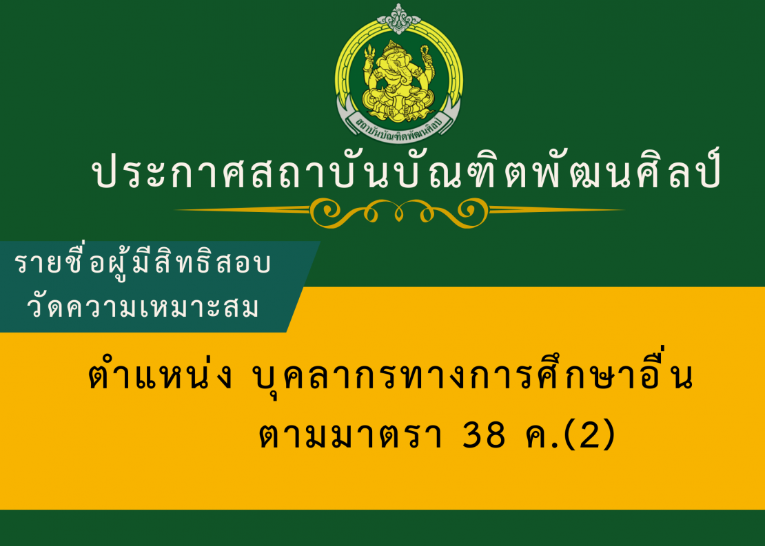 รายชื่อผู้มีสิทธิเข้าสอบแข่งขันเพื่อวัดความเหมาะสมกับตำแหน่ง ในการสอบแข่งขันเพื่อบรรจุและแต่งตั้งบุคคลเข้ารับราชการเป็นข้าราชการครูและบุคลากรทางการศึกษา ตำแหน่งบุคลากรทางการศึกษาอื่นตามมาตรา 38 ค.(2) สังกัดสถาบันบัณฑิตพัฒนศิลป์ พ.ศ. 2568