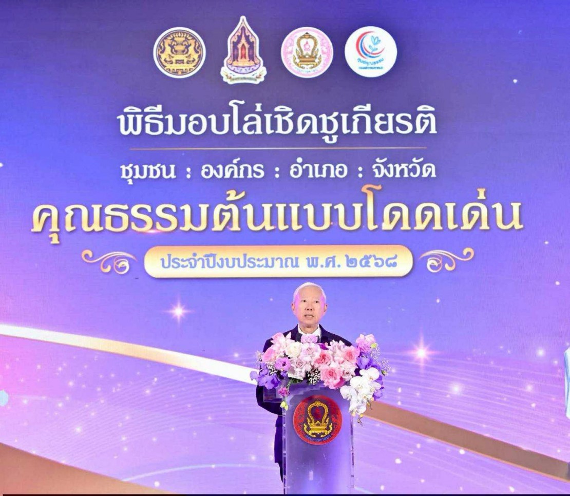 เข้าร่วมเป็นเกียรติในพิธีมอบโล่เชิดชูเกียรติชุมชน องค์กร อำเภอ และจังหวัดคุณธรรมต้นแบบโดดเด่น ประจำปีงบประมาณ พ.ศ. 2568 โดยมี ศาสตราจารย์กิตติคุณ ดร.บวรศักดิ์ อุวรรณโณ รองนายกรัฐมนตรี เป็นประธานในพิธี พร้อมด้วย นายประสพ เรียงเงิน ปลัดกระทรวงวัฒนธรรม และผู้บริหารหน่วยงานในสังกัดกระทรวงวัฒนธรรม เข้าร่วมเป็นเกียรติ ในวันพฤหัสบดีที่ 5 กุมภาพันธ์ 2569 ณ อาคารหอศิลป์แห่งชาติ กระทรวงวัฒนธรรม