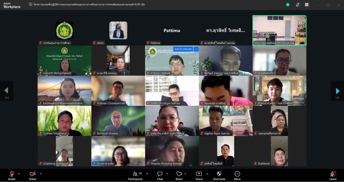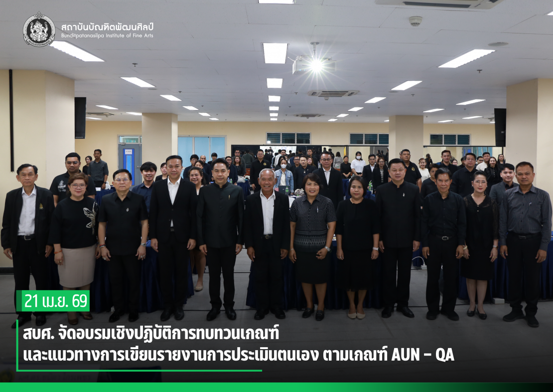 สถาบันบัณฑิตพัฒนศิลป์ จัดอบรมเชิงปฏิบัติการทบทวนเกณฑ์และแนวทางการเขียนรายงานการประเมินตนเอง ตามเกณฑ์ AUN – QA โดยมี ผู้ช่วยศาสตราจารย์ ดร. สมเกียรติ ภูมิภักดิ์ อธิการบดี เป็นประธานในพิธีเปิด รองศาสตราจารย์ ดร.สมภพ เขียวมณี รองอธิการบดี กล่าวรายงาน  พร้อมด้วย อาจารย์ผู้รับผิดชอบหลักสูตรและบุคลากรผู้ปฏิบัติงานด้านประกันคุณภาพการศึกษา จำนวน 95 คน เข้าร่วม ระหว่างวันที่ 20 – 21 เมษายน 2569 ณ ห้องปฏิบัติการ 405 คณะศิลปศึกษา สถาบันบัณฑิตพัฒนศิลป์ (ศาลายา) และผ่านระบบออนไลน์ Zoom Meeting