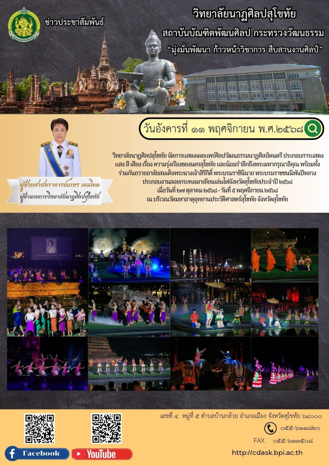 • วิทยาลัยนาฏศิลปสุโขทัย จัดการแสดง.oงานลอยกระทง เผาเทียน เล่นไฟ จังหวัดสุโขทัย ประจำปี ๒๕๖๘
