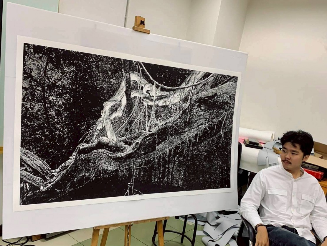นายอภิวัฒน์ จันทบาล นักศึกษาชั้นปีที่ 4 Aphiwat Chanthaban วิชาเอกภาพพิมพ์ สาขาวิชาทัศนศิลป์ คณะศิลปวิจิตร สถาบันบัณฑิตพัฒนศิลป์