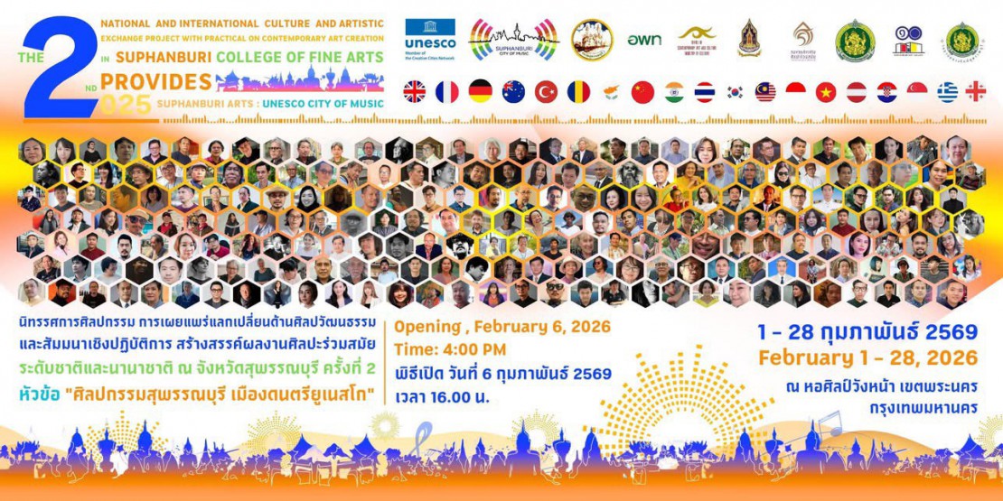 ✨ ️Arts Exhibition The 2nd National and International Cultural and Artistic Exchange Project with Practical Workshop on Contemporary Art Creation in Suphanburi Province, 2025 Theme: "Suphanburi Arts: UNESCO City of Music"
