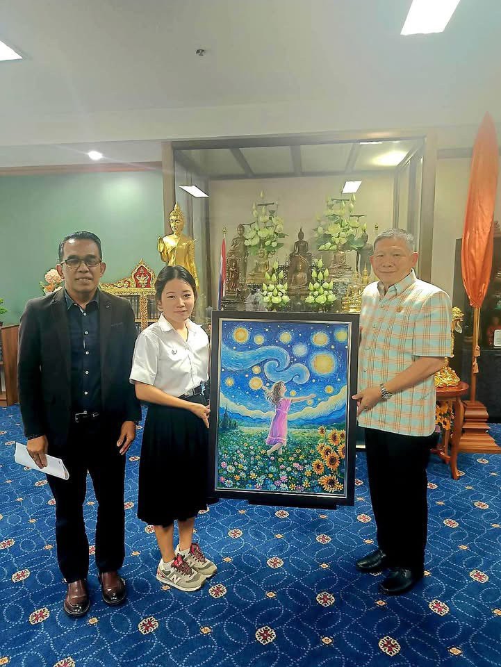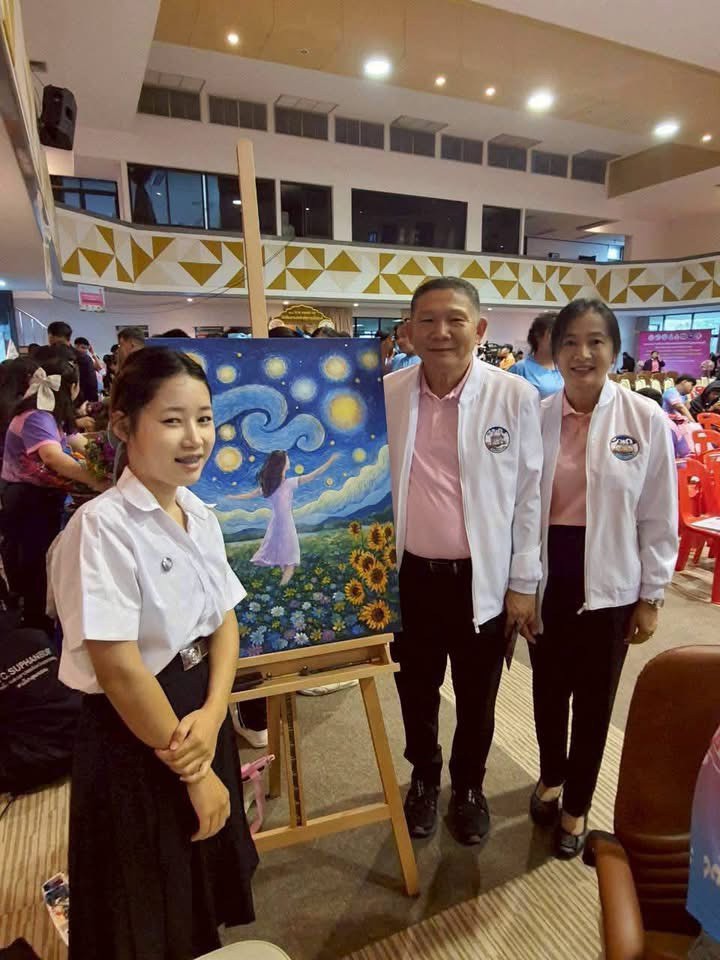✨️ขอแสดงความยินดีกับ นางสาวน้ำฝน นักเรียนระดัยชั้น ปวช.2 วิทยาลัยช่างศิลปสุพรรณบุรี สถาบันบัณฑิตพัฒนศิลป์ ที่ได้รับโอกาสอันทรงเกียรติจาก ท่านพิริยะ ฉันทดิลก ผู้ว่าราชการจังหวัดสุพรรณบุรี โดยท่านได้ให้ความอนุเคราะห์ซื้อผลงานศิลปะของนักเรียน เพื่อเป็นทุนการศึกษาแก่เยาวชนที่มีความสามารถด้านศิลปะ ติดตั้ง ห้องทำงาน ณ ศาลากลางจังหวัดสุพรรณบุรี