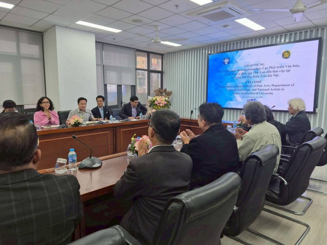 ✨️วิทยาลัยช่างศิลปสุพรรณบุรี สถาบันบัณฑิตพัฒนศิลป์ กระทรวงวัฒนธรรม สถานศึกษาในสังกัด เป็นผู้รับผิดชอบจัดทำและดำเนินโครงการ “การบันทึกความเข้าใจร่วมกัน [MOU] ด้านการศึกษา เผยแพร่และแลกเปลี่ยนด้านศิลปวัฒนธรรมระหว่างสถาบันบัณฑิตพัฒนศิลป์ ประเทศไทย และ Hanoi Architectural University รูปแบบกิจกรรม Art Workshop ณ เมืองตามด๋าว จังหวัดหวิญฟุก สาธารณรัฐสังคมนิยมเวียดนาม และเผยแพร่รูปแบบจัดนิทรรศการศิลปกรรม ในช่วงวันที่ 17 - 18 มกราคม 2569 ณ Hanoi Architectural University กรุงฮานอย สาธารณรัฐสังคมนิยมเวียดนาม พร้อมคณะเดินทาง