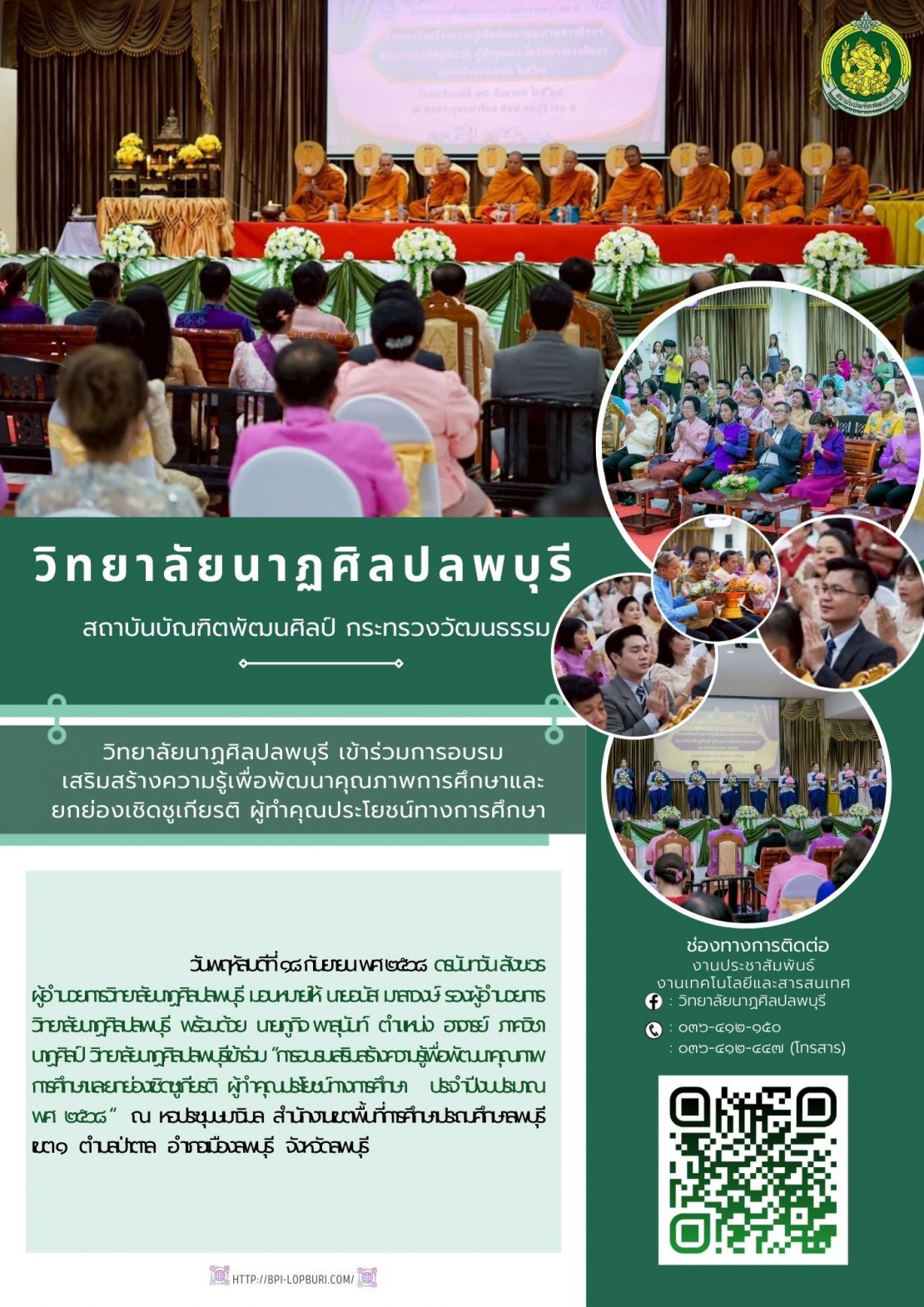 วิทยาลัยนาฏศิลปลพบุรี เข้าร่วม "การอบรมเสริมสร้างความรู้เพื่อพัฒนาคุณภาพการศึกษาและยกย่องเชิดชูเกียรติ ผู้ทำคุณประโยชน์ทางการศึกษา ประจำปีงบประมาณ พ.ศ. ๒๕๖๘"