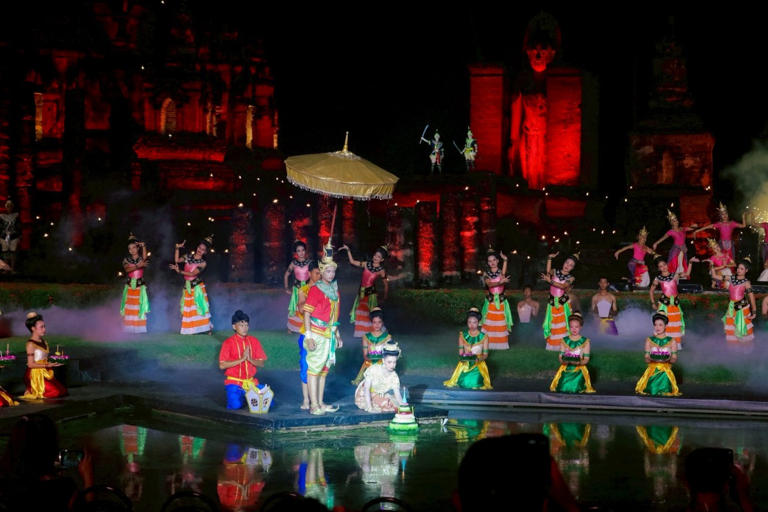 วิทยาลัยนาฏศิลปสุโขทัย จัดการแสดง ประกอบแสง สี เสียง เรื่อง ความรุ่งเรืองของนครสุโขทัย และน้อมรำลึกถึงพระมหากรุณาธิคุณ พร้อมทั้งร่วมกันถวายอาลัยสมเด็จพระนางเจ้าสิริกิติ์ พระบรมราชินีนาถ พระบรมราชชนนีพันปีหลวง