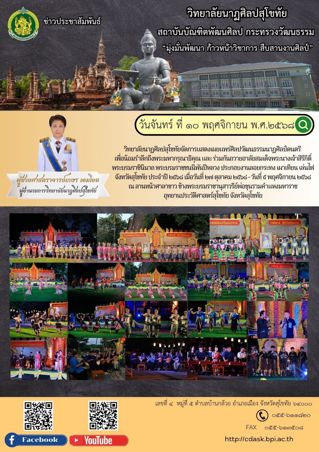 วิทยาลัยนาฏศิลปสุโขทัย จัดการแสดง.oงานลอยกระทง เผาเทียน เล่นไฟ จังหวัดสุโขทัย ประจำปี ๒๕๖๘