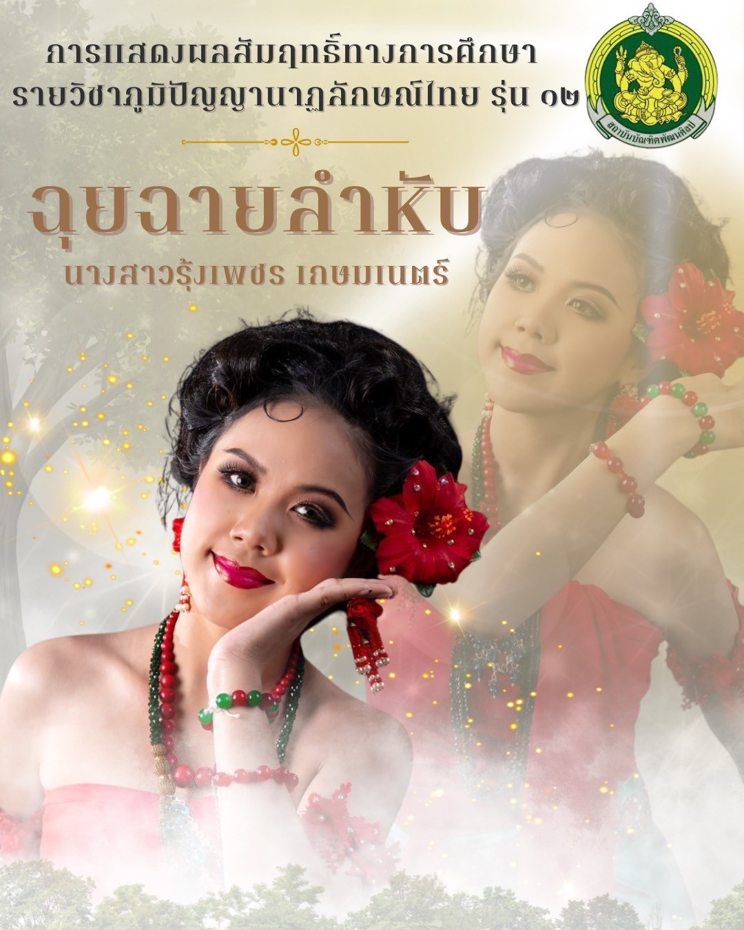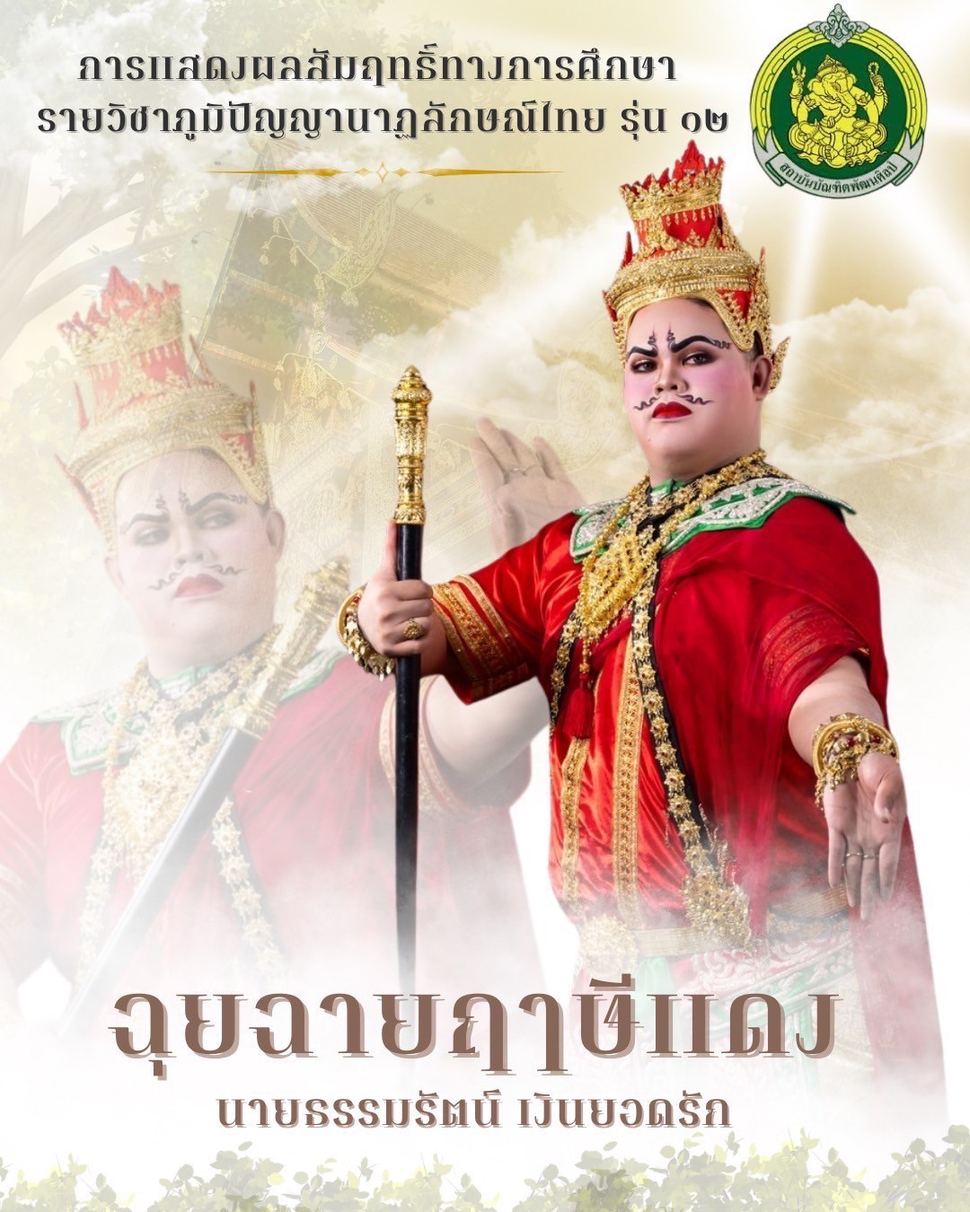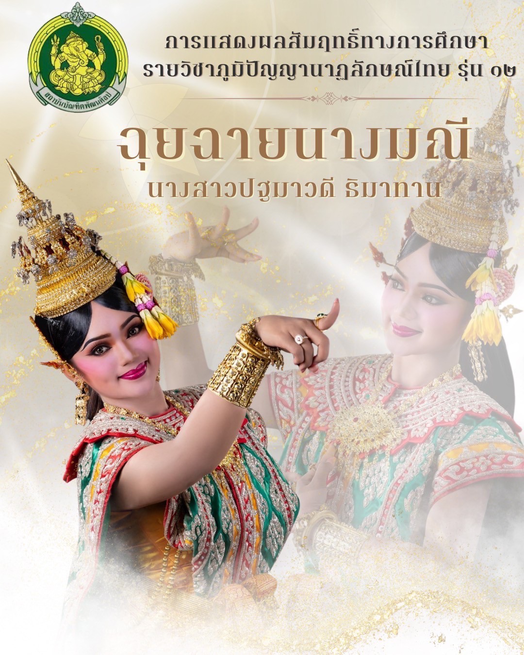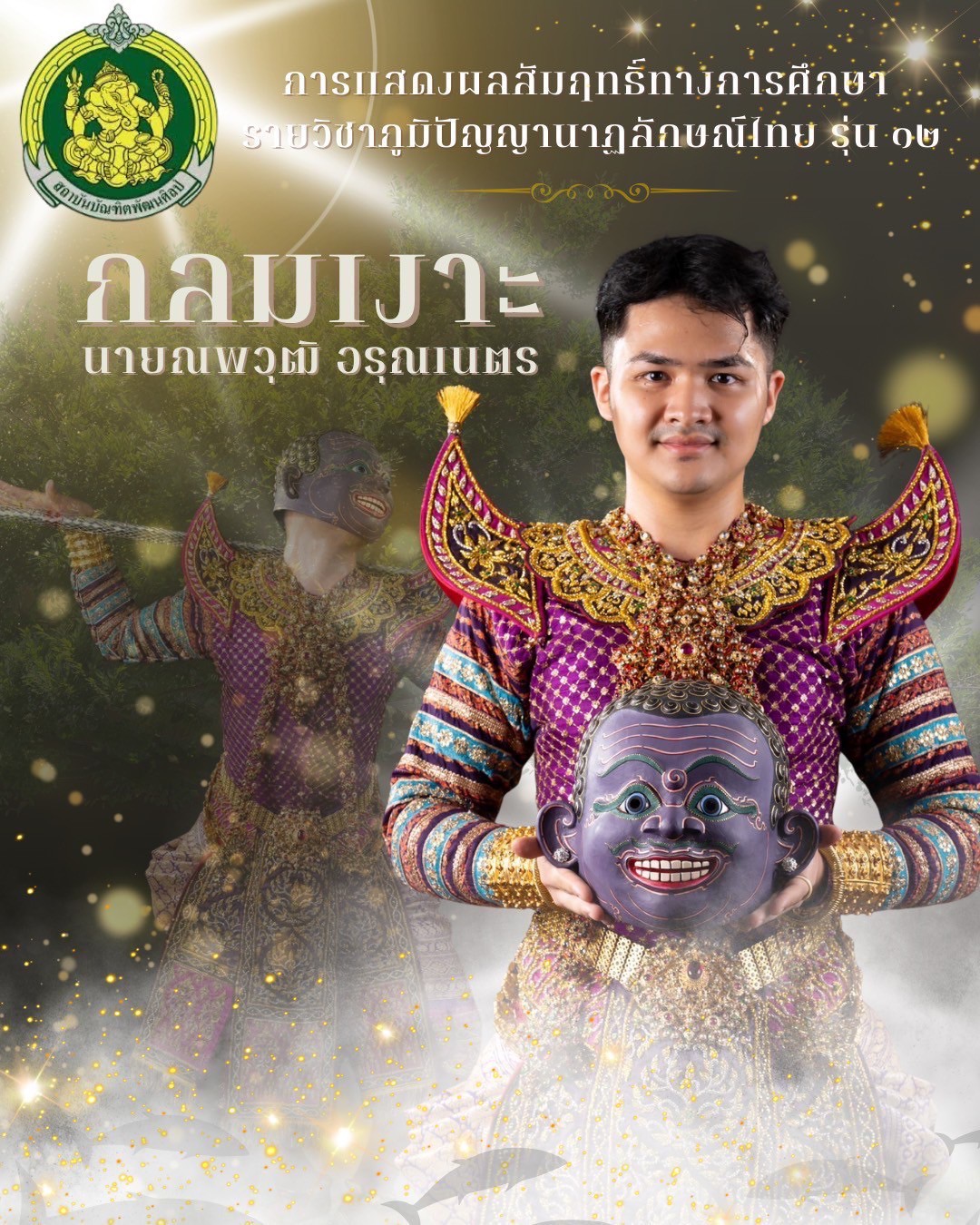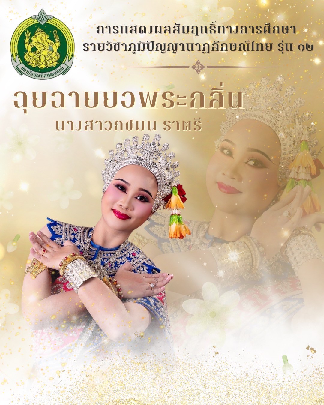 วิทยาลัยนาฏศิลป ขอเชิญชม การแสดงผลสัมฤทธิ์ทางการศึกษา รายวิชา ภูมิปัญญานาฏลักษณ์ไทย ของนักศึกษาระดับชั้นปริญญาตรีปีที่ 4 รุ่นที่ 12