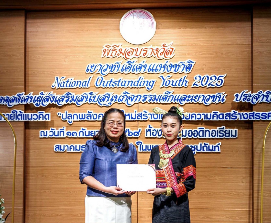 วิทยาลัยนาฏศิลป ขอแสดงความยินดีกับนักเรียนระดับชั้น ปวช.3/6 ที่ได้รับรางวัล “เยาวชนดีเด่นแห่งชาติ” ประจำปี 2568 ด้านศิลปวัฒนธรรม จาก กระทรวงการพัฒนาสังคมและความมั่นคงของมนุษย์ จัดโดย องค์กรเยาวชนสร้างสรรค์สังคม ร่วมกับ องค์ส่งเสริมกิจกรรมวัฒนธรรมไทย-อาเซียน