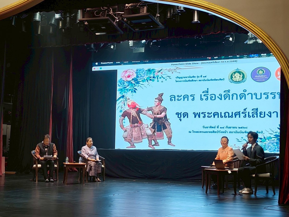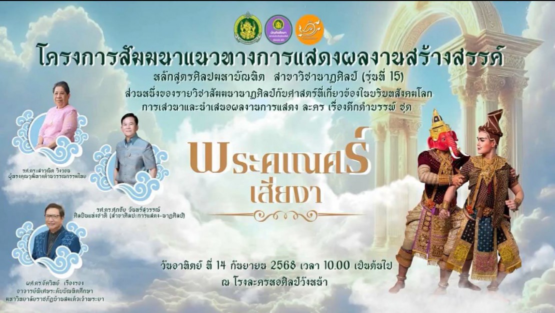 โครงการบัณฑิตศึกษา จัดกิจกรรมโครงการสัมมนาแนวทางการแสดงผลงานสร้างสรรค์ หลักสูตรศิลปมหาบัณฑิต สาขาวิชานาฏศิลป์ (รุ่นที่ 15) พระคเณศร์เสียงา