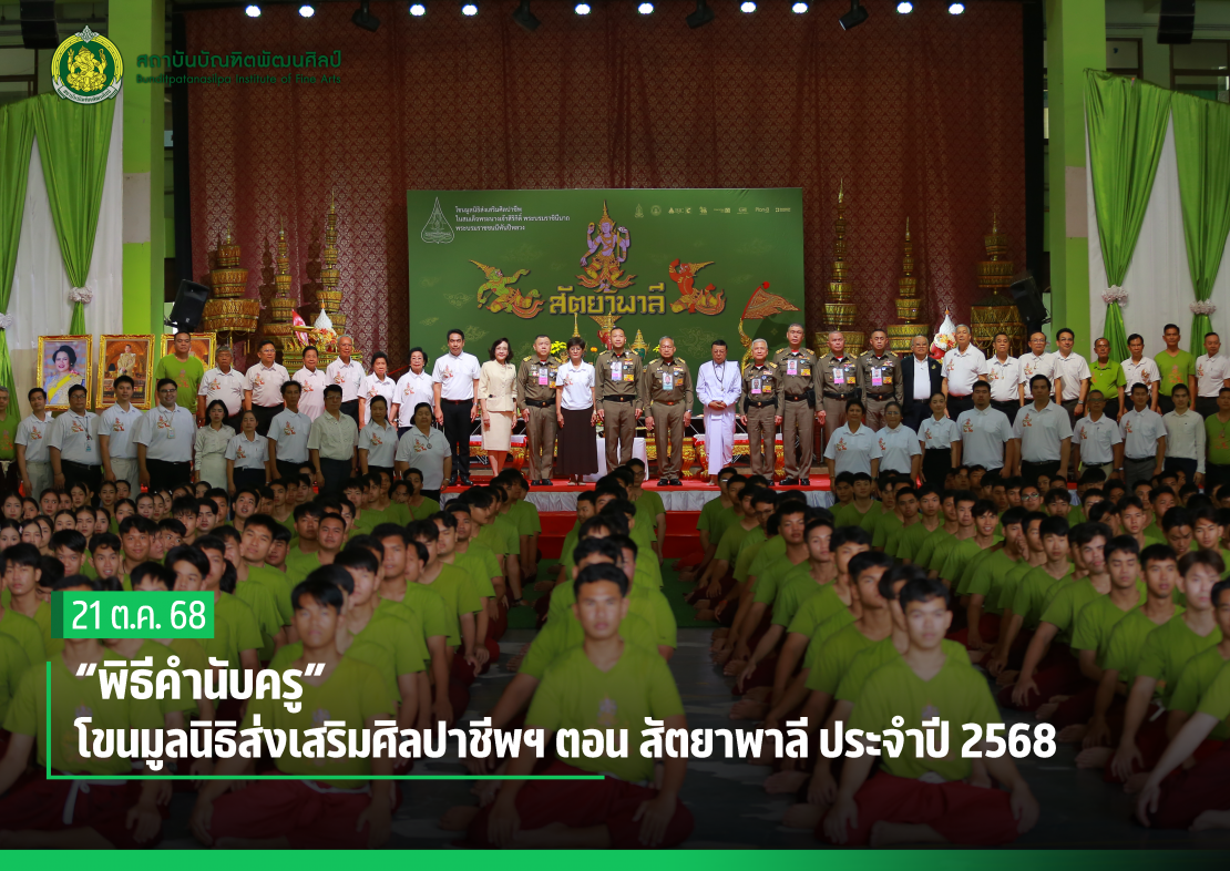 “พิธีคำนับครู” เป็นพิธีสำคัญในวงการนาฏศิลป์และดุริยางคศิลป์ ด้วยถือกันว่า เพลงหน้าพาทย์ ดนตรี และท่ารำ เป็นเพลงและท่ารำที่ศักดิ์สิทธิ์ เมื่อเริ่มกิจกรรมแรกด้วยพิธีคำนับครู จะเป็นสิริมงคลสำหรับครูอาจารย์ ศิลปิน นักแสดงทุกคน รวมถึงผู้ที่เข้าร่วมพิธีฯ การแสดงโขนมูลนิธิส่งเสริมศิลปาชีพฯ เรื่อง รามเกียรติ์ ตอน สัตยาพาลี ประจำปี 2568 โดยเริ่มฝึกซ้อม ระหว่างวันที่ 20 - 27 ตุลาคม 2568