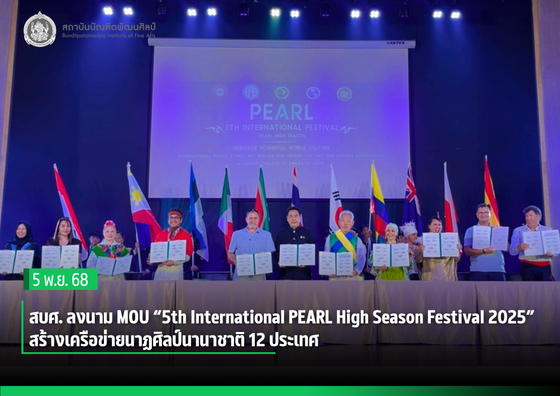 สบศ. ลงนาม MOU “ 5th International PEARL High Season Festival 2025” สร้างเครือข่ายนาฏศิลป์นานาชาติ 12 ประเทศ